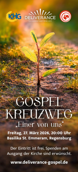 Das etwa eineinhalbstündige Programm unter dem Motto „Einer von uns“ mit rund 40 Sängerinnen und Sängern von Deliverance, begleitet von einer vielköpfigen Band unter der musikalischen Leitung von Dr. Simon Meier, stimmt mit einer abwechslungsreichen Mischung aus Eigenkompositionen und zeitgenössischen Soul- und Gospel-Songs auf die Passionszeit ein.